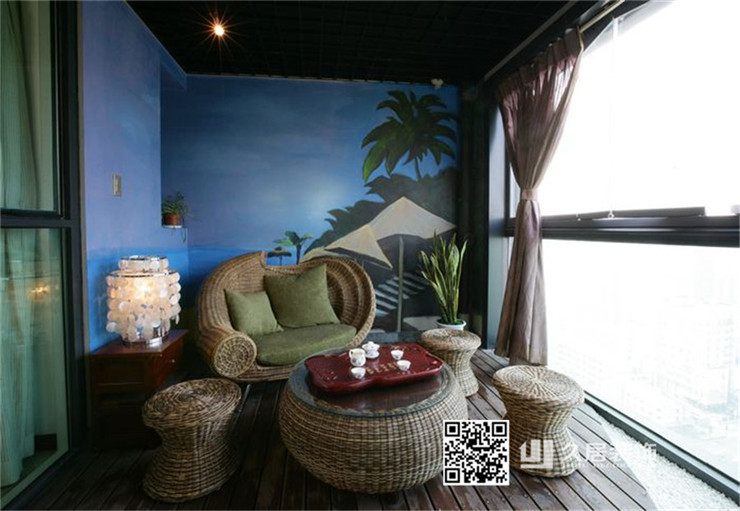 陽臺(tái)-休閑藤椅-遠(yuǎn)洋香奈89㎡現(xiàn)代簡約風(fēng)格裝修案例