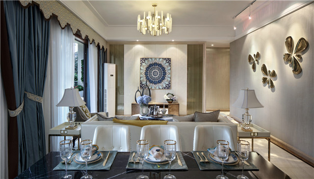客餐廳-孔雀藍窗簾-邂逅摩登時代