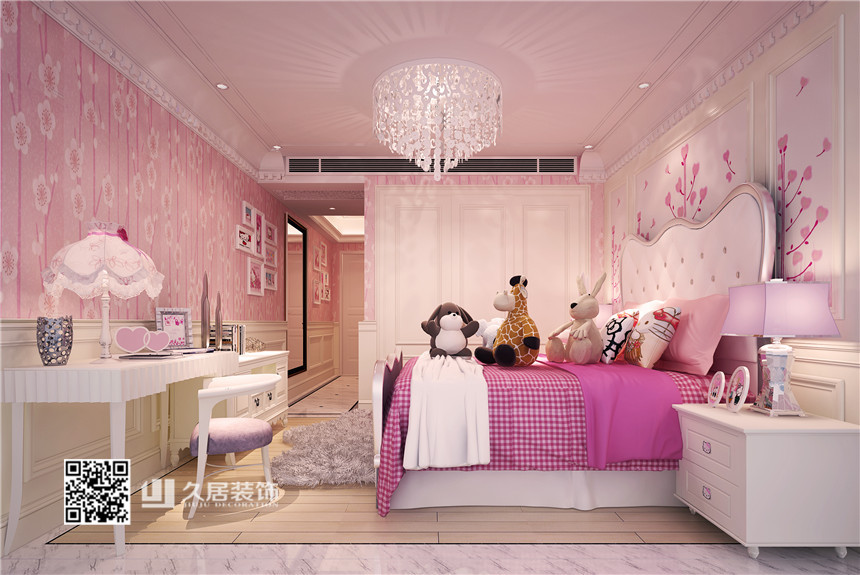 公主房-粉色臥室-昆侖府簡(jiǎn)歐風(fēng)格裝修案例