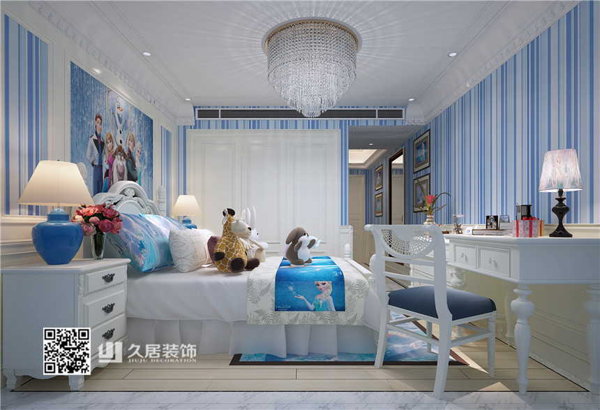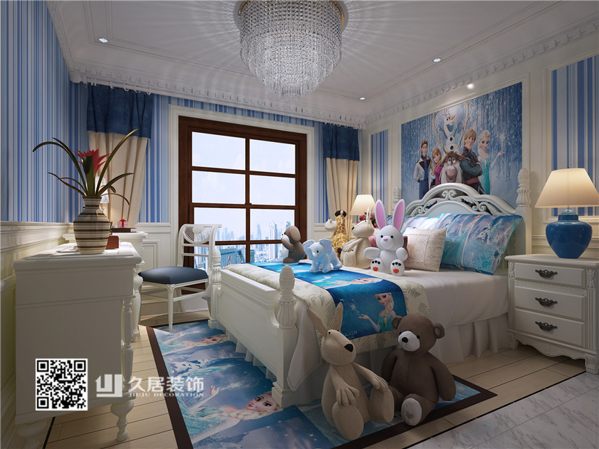 臥室-藍(lán)色臥室-昆侖府簡(jiǎn)歐風(fēng)格裝修案例
