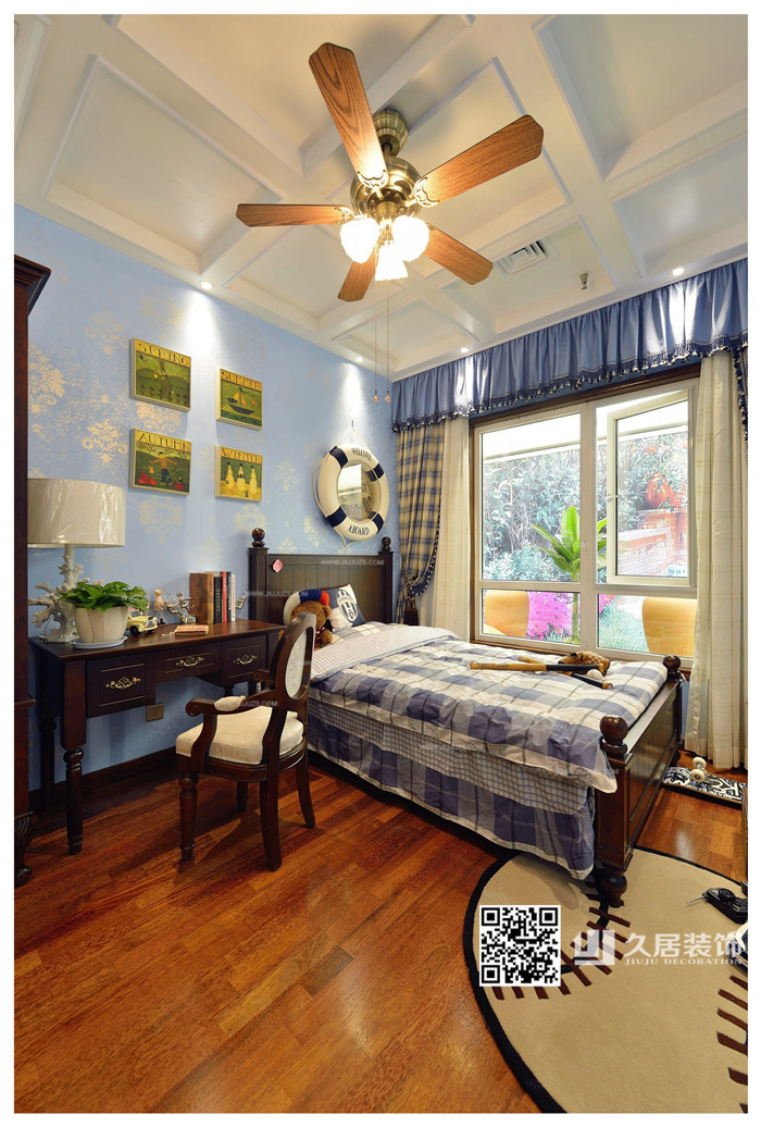 臥室-藍(lán)色-易辰江南大院170㎡混搭風(fēng)格大宅裝修